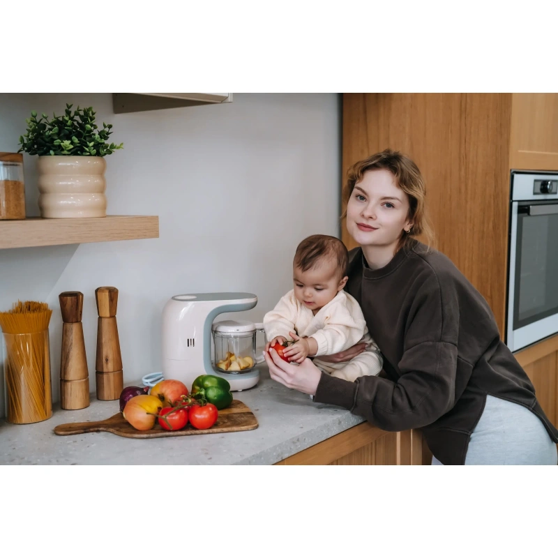 Momini NutriBlend 6in1 on nutikas ja kompaktne aurutiga blender, mis ühendab endas kuus olulist funktsiooni: aurutamine, püreestamine, kuumutamine, segamine, serveerimine ja hoiustamine – kõik ühes seadmes. Ideaalne valik vanematele, kes soovivad pakkuda oma lapsele tervislikku toitu ilma segaduseta köögis.